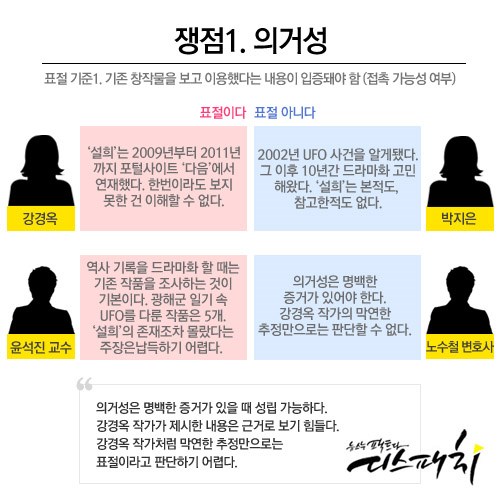 덧붙여, 전문가들의 의견을 요청했다. 한국방송작가협회 관계자, 드라마 평론가 윤석진 교수 등에게 물었고, 저작권에 정통한 노수철 변호사(법무법인 한중)와 김경환 변호사(법률사무소 민후)에게 법적인 자문을 구했다.