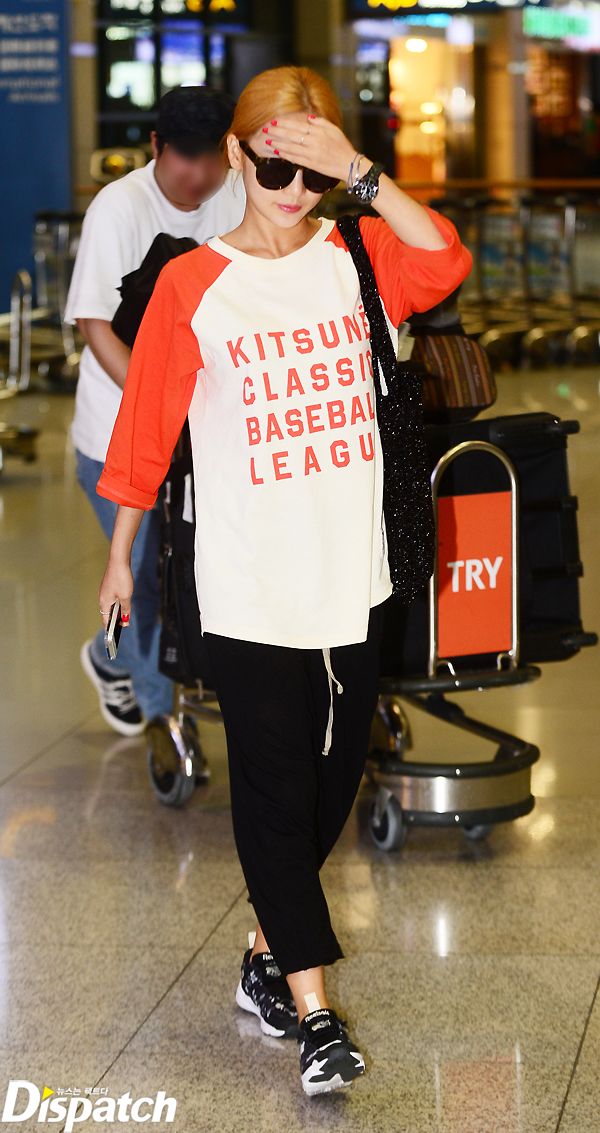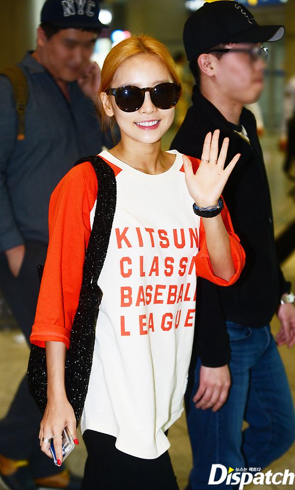 이날 입국장에 모습을 드러낸 구하라는 꾸러기 공항패션을 선보였다. 오렌지 컬러의 심플한 7부 티셔츠와 함께 블랙 색상의 베기 팬츠, 운동화를 매치했다.