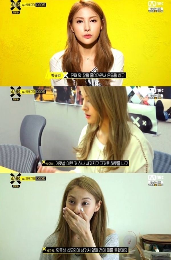 박규리는 2일 방송된 Mnet '4가지쇼'에서 "작년까지는 잠을 줄여가면서 운동하고 밥을 진짜 안 먹었다"며 "잘 시간이 3~4시간이어도 운동을 했다"고 고백했습니다.