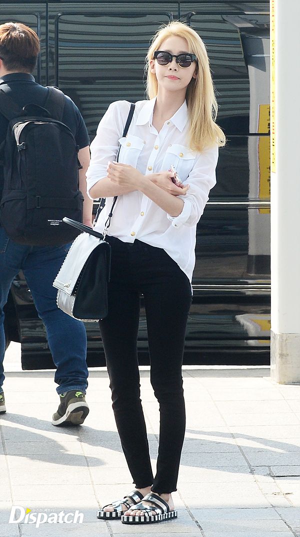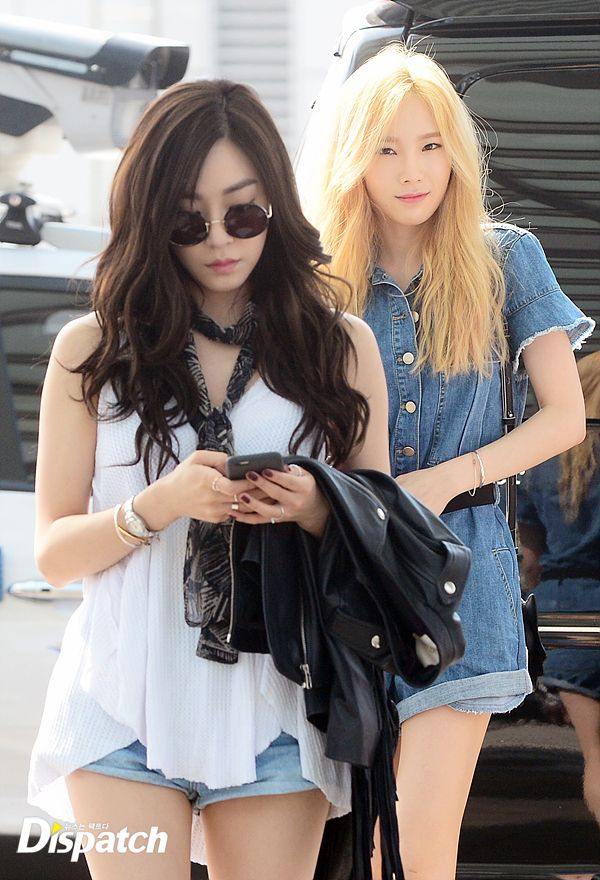 이날 출국장에 모습을 드러낸 윤아와 태연은 파격적인 금발헤어로 시선을 집중시켰다.