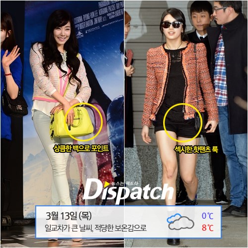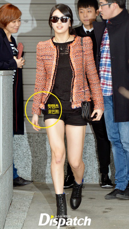 제안 ② 트위드재킷 & 핫팬츠 : 좀더 섹시하게 입어보고 싶다고요? 그렇다면 '미쓰에이' 수지를 따라해 보세요. 오렌지 컬러의 트위드 재킷에 올블랙 핫팬츠 룩으로 늘씬한 각선미를 강조하면 됩니다.