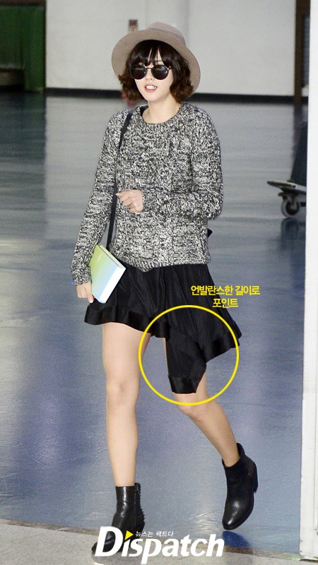 제안 ② 니트 & 언밸런스 스커트 : 너무 어려 보이는 건 싫으시다고요? 그렇다면 고아라의 언밸런스 룩을 참고하세요. 보카시 스웨터에 한쪽 길이가 긴 언밸런스 스커트를 입는다면 시크한 분위기를 연출할 수 있어요.