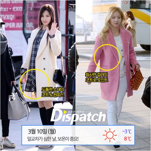 제안 ① 코트 & 원피스 룩 : 보온성과 계절감 둘 다 신경 써야 하는 날씨입니다. '소녀시대' 서현처럼 화이트 컬러의 봄코트를 입어 보세요. 따뜻하면서도 화사한 분위기를 연출할 수 있습니다.