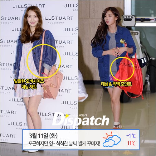 제안 ① 청재킷 & 원피스 : 날씨가 칙칙하다고 패션까지 어두울 필요는 없겠죠. 날이 따뜻한 만큼, 얇은 재킷을 준비해 보세요. '씨스타' 다솜처럼요. 복고풍의 오버 사이즈 청재킷을 입어 보세요. 소매는 살짝 롤업해 주시고요. 귀여워 보일 거예요.