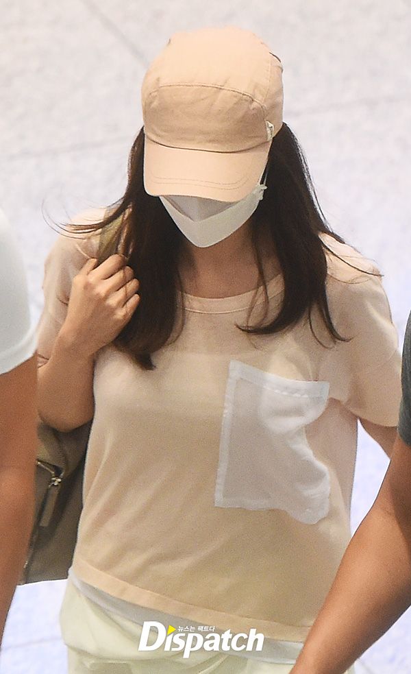 한편 두 사람은 편안한 차림의 공항 패션을 연출했다. 김태희는 누드톤 티셔츠에 하얀색 프릴 스커트를 입었다. 모자와 마스크로 생얼을 사수했다.