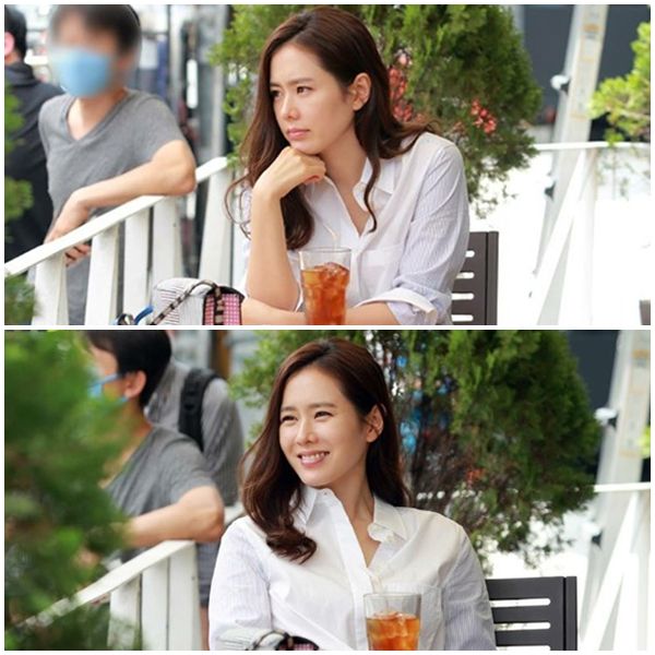 엠에스팀 엔터테인먼트는 6일 저녁 공식 페이스북에 손예진의 촬영 B컷을 올렸다. 화창한 날씨, 카페에 앉아 휴식을 즐기고 있는 모습이였다.