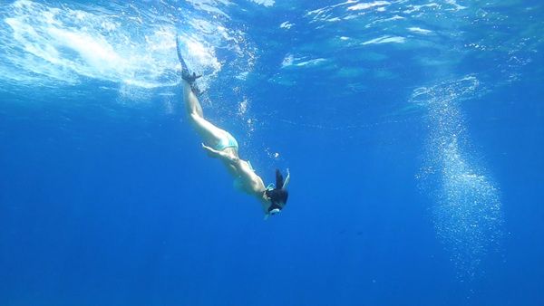 다솜은 마치 인어공주같은 비주얼을 선보였습니다. 하늘색 컬러의 비키니를 입고, 바다에 뛰어들었습니다. 뽀얀 피부와 군살 없는 보디라인까지 뽐냈습니다.