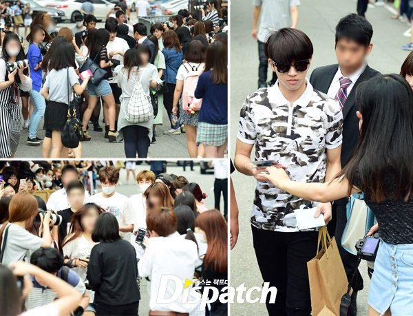 이날 인피니트를 보기 위해 수많은 팬들이 인산인해를 이뤘다. 인피니트는 입장부터 팬들에게 둘러싸여 선물 공세를 받았다.