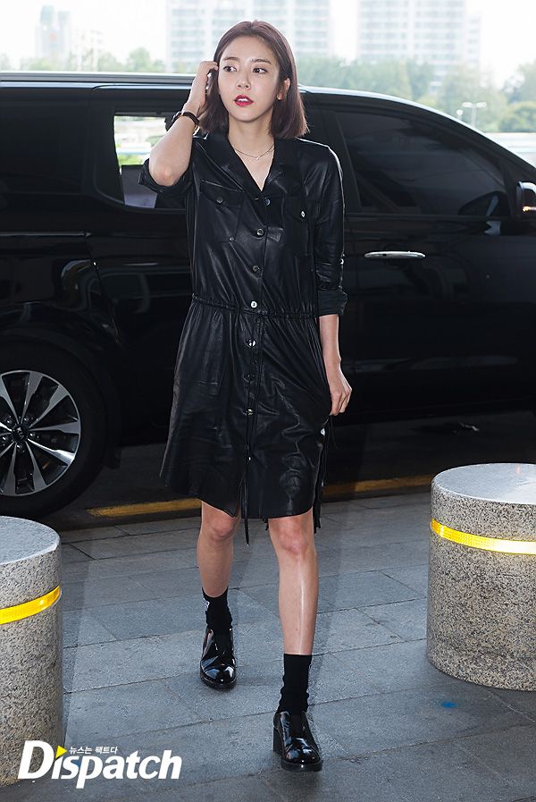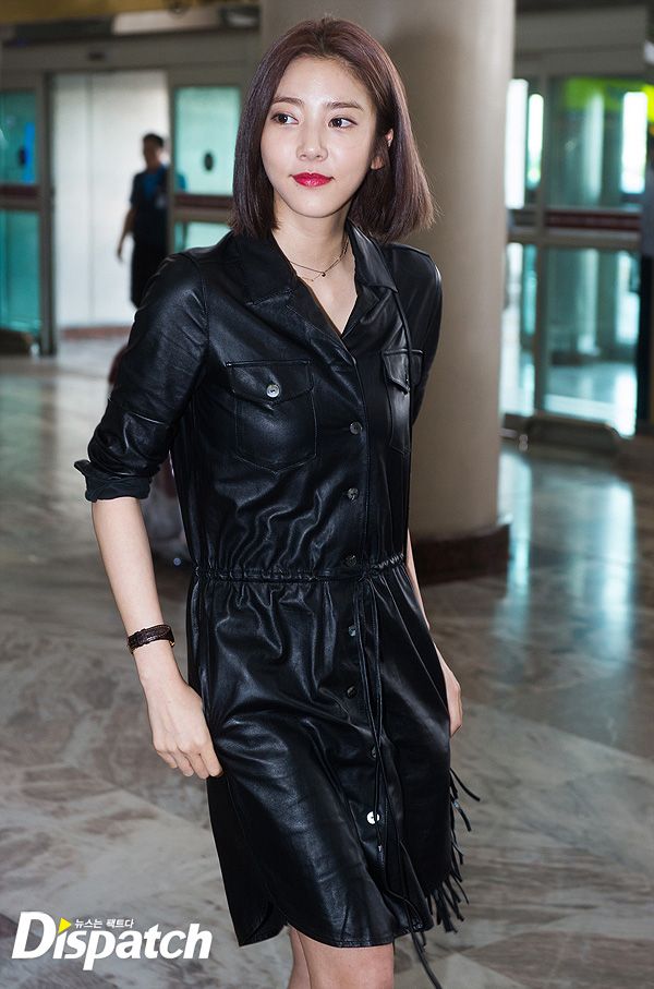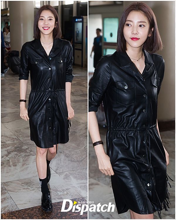 이날 손담비는 시크한 스타일을 연출했다. 가죽 원피스와 슈즈를 올블랙으로 매치, 감각적인 패션센스를 자랑했다.