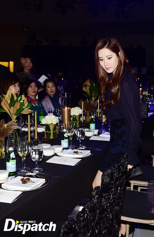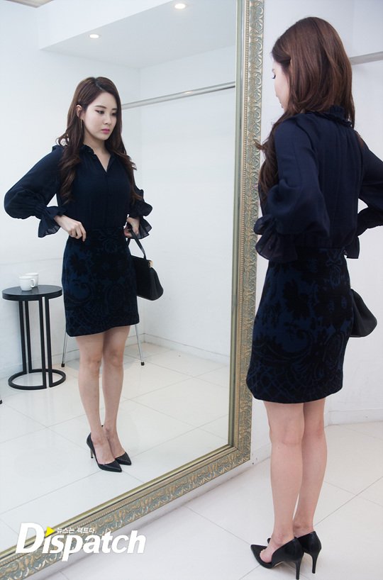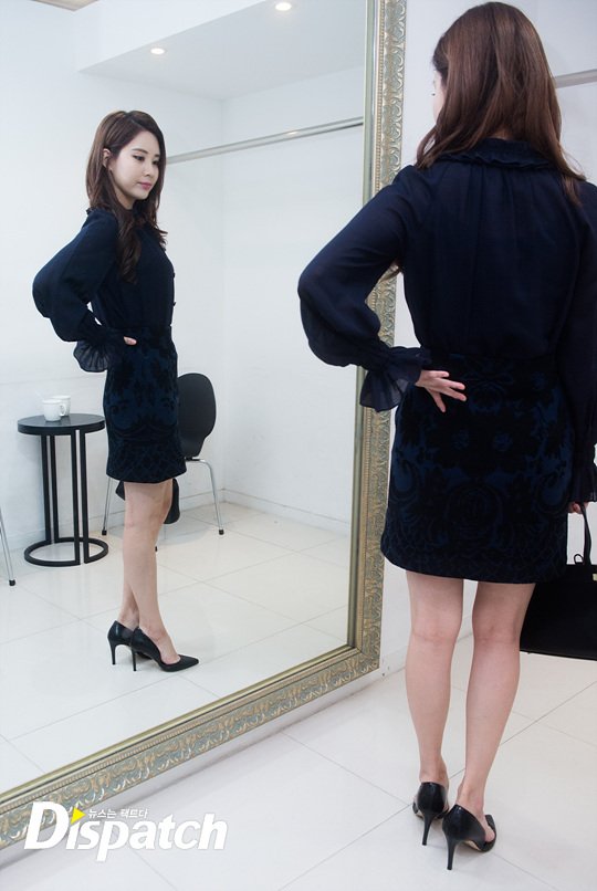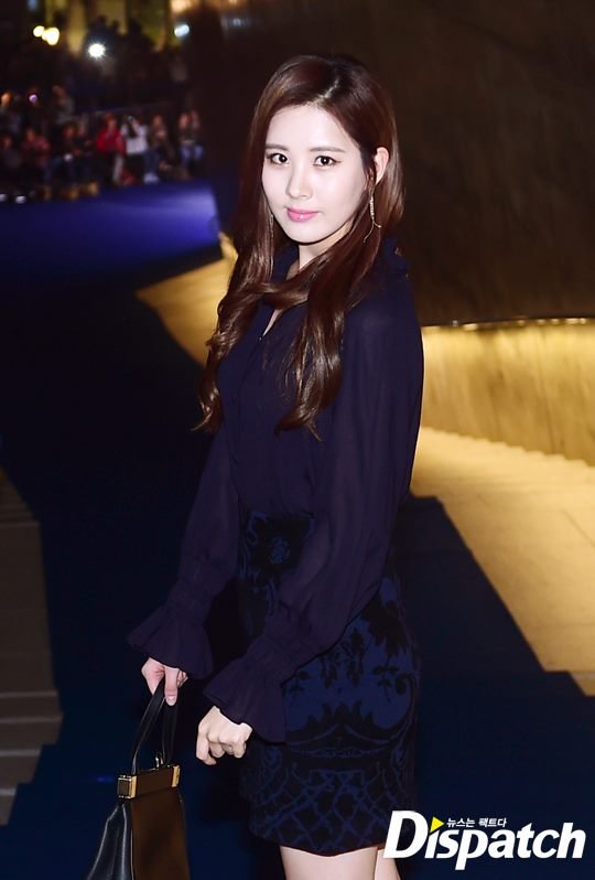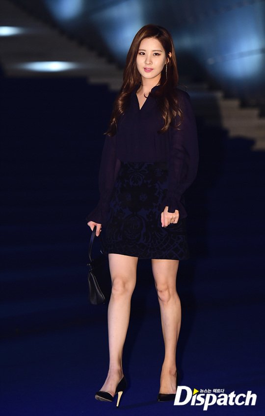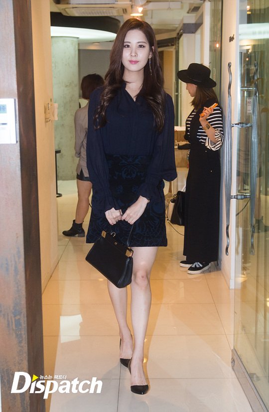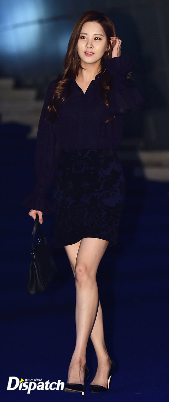 패션은 시크, 그 자체였습니다. 네이비 블라우스와 스커트로 여성미를 강조했습니다. 서현의 단아한 매력을 110% 업시키는 스타일입니다.
