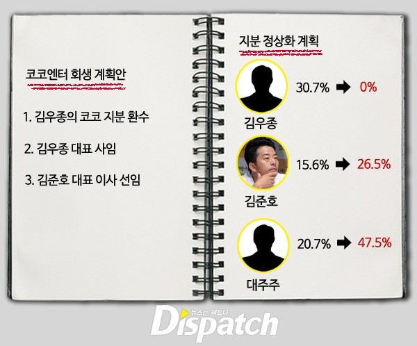 내용은 다음과 같다. 김우종의 코코 지분(30.7%)를 환수하고, 대표 자리에서 사임시키며, 그 자리에 김준호를 앉힌다는 것.