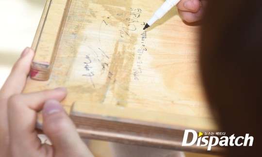 여진이를 위한 특급 팬서비스는 계속됐습니다. 이번에는 여진의 테이블에 사인을 남겼는데요. 여진이는 그 사이에 엘의 눈, 코, 입을 만지며 관심을 표했습니다.