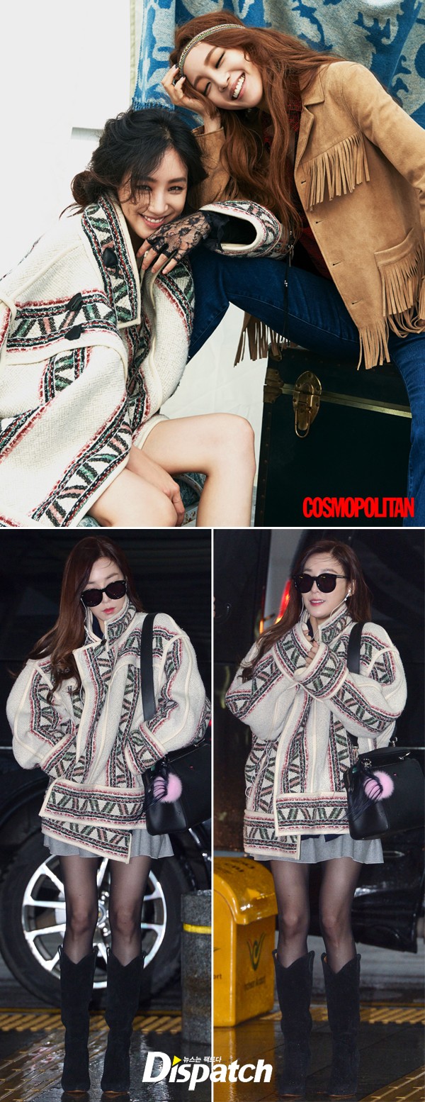 정려원과 티파니가 같은 코트를 입었다. 정려원은 지난 9월 패션지 '코스모폴리탄' 화보에서, 티파니는 12월 인천공항 출국길에서 선보였다.