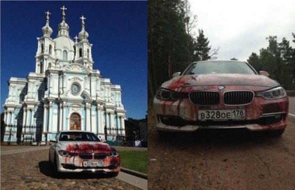 차 주인은 BMW의 빨간색 페인트가 더 피처럼 실감나게 보이게 하기 위해 전문가까지 찾아갔답니다.