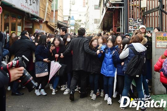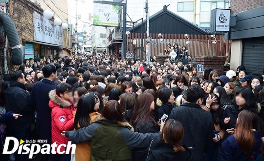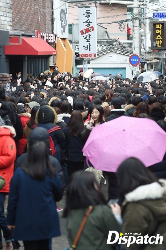 대학로가 마비됐습니다. 서강준을 보기 위해 수많은 팬들이 몰렸고요. 일부는 담벼락에 올라 서강준을 기다렸습니다.