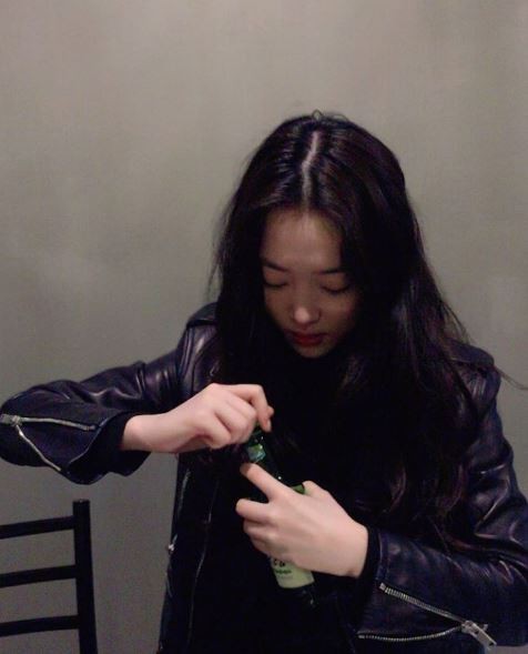설리는 9일 인스타그램에 주점에서 찍은 사진을 올렸습니다. 소주병 뚜껑을 따고 있는 자신의 모습을 담았는데요.