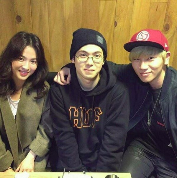 분위기는 화기애애했다. 두 사람은 '송송커플'과 다정하게 포즈를 취했다. 송혜교 옆에 앉은 매드클라운은 잔뜩 긴장한 표정을 지어, 웃음을 자아냈다.