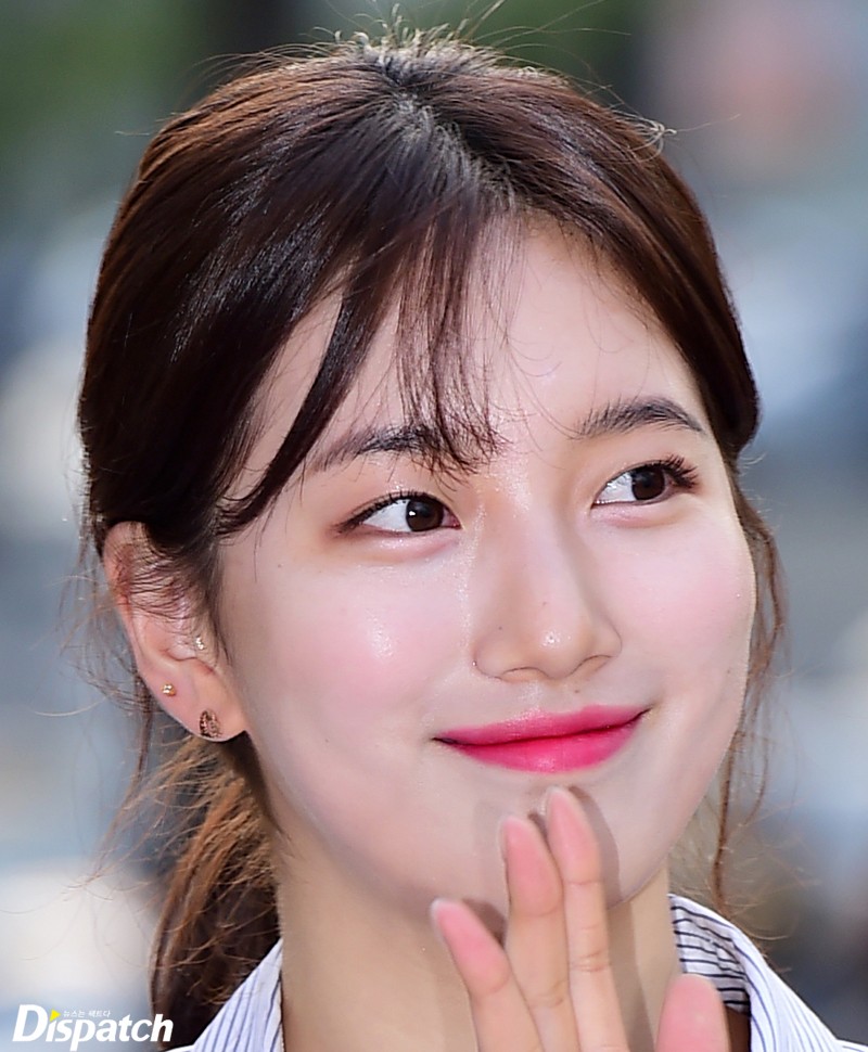 수지는, 명불허전 수지였습니다. 봄을 닮은 화사한 메이크업을 했더니, 한층 러블리해졌죠. 백옥 같은 꿀피부도 감탄을 불러일으켰습니다.