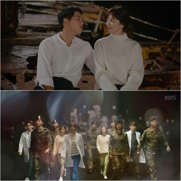 이날 방송은 죽음의 문턱에서 1년 만에 돌아온 유시진(송중기 분)과 강모연(송혜교 분)의 해피엔딩이 그려졌다. 두 사람은 우르크 해변에서, 영원한 사랑을 약속했다.