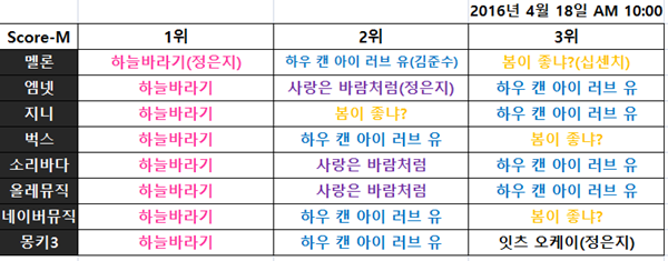 그 외에는 KBS-2TV '태양의 후예' OST가 롱런 중이다. 김준수의 '하우 캔 아이 러브 유'(How Can I Love You)는 멜론, 벅스, 네이버뮤직, 몽키3 등에서 2위에 올랐다.