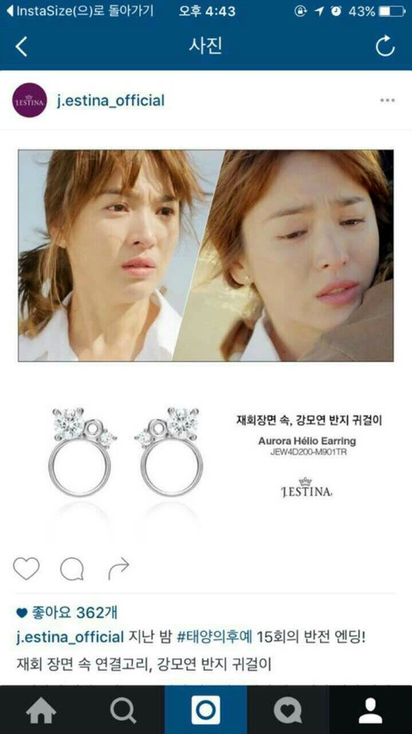 대신, J사는 KBS 드라마 '태양의 후예' 제작사와 PPL 광고계약을 맺었습니다. 드라마를 통해 강모연의 귀걸이 등을 노출하는 방식입니다.