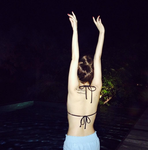 현아는 1일 새벽 자신의 공식 인스타그램에 사진을 올렸습니다. 야밤에 야외 수영장에서 물놀이를 즐기는 모습이었습니다.
