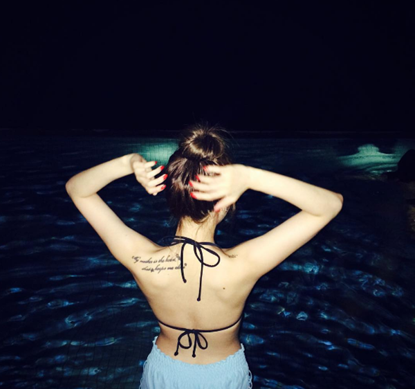 패왕색의 위엄을 드러냈습니다. 현아는 특유의 퇴폐미를 뽐냈습니다. 목덜미에 새겨진 타투가 섹시미를 더했습니다.