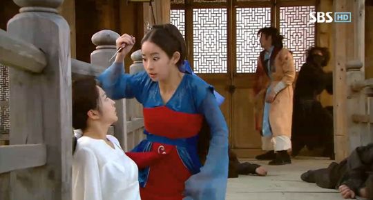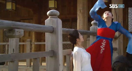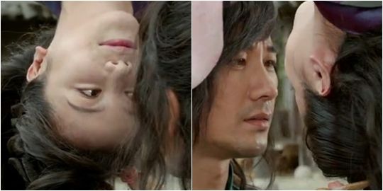▶ KBS-2TV '칼과 꽃' : 뜬금포 물구나무도 화제였죠. 무영공주(김옥빈 분)와 연충(엄태웅 분)의 첫 만남입니다. 서로 첫눈에 반하는 장면을 파격 연출했는데요.