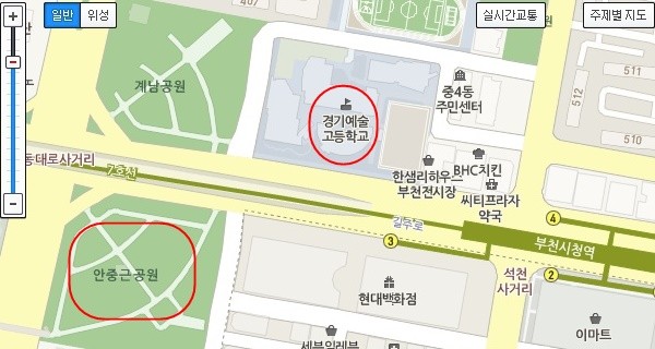 설현은 경기예고 출신입니다. 경기예고가 있는 중동대로 사거리는 설현이 고등학교 입학 후 졸업까지, 약 3년 동안 수없이 오고갔을 길입니다.