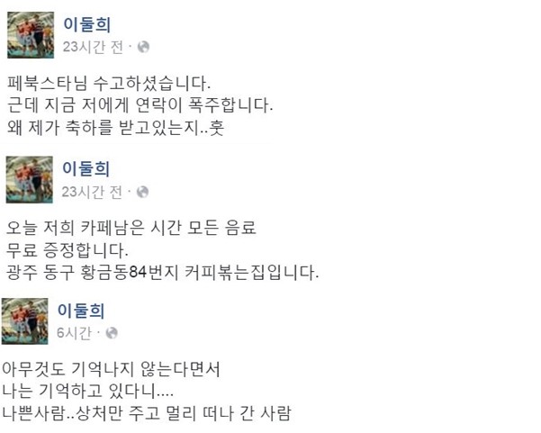 그리고, 자신이 운영하는 카페의 음료를 무료로 제공하겠다는 이벤트 글도 올렸습니다.