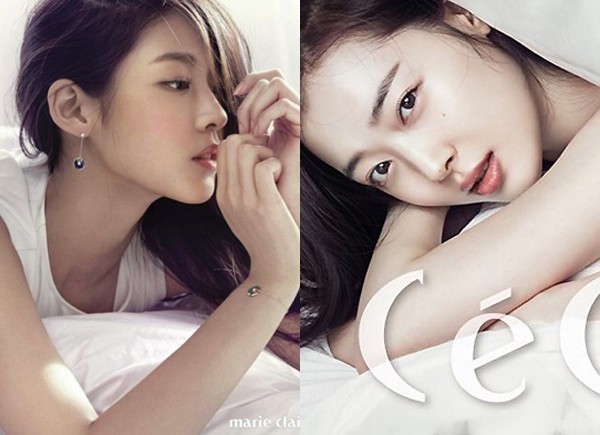침대 화보도 우열을 가릴 수 없습니다. 두 사람 모두 청순미와 고혹미가 느껴졌습니다. 설현은 침대에 엎드려 자연스러운 분위기를 연출했고요. 설리는 그윽한 눈빛으로 남심을 자극했습니다.