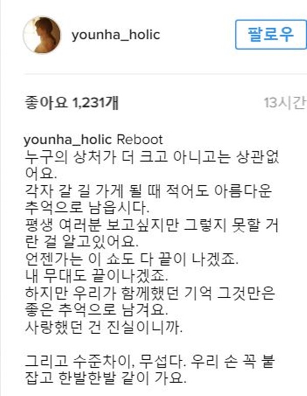 한편 윤하는 같은 날 인스타그램을 통해 심경을 털어놨습니다. 팬들에게 솔직한 속내를 드러냈는데요.