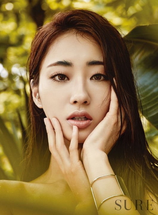 패션지 '슈어'는 29일 공식 홈페이지를 통해 경리의 화보를 공개했다. 풀숲에서 수영복을 입고 포즈를 취한 모습이다.