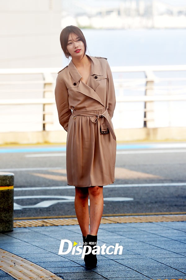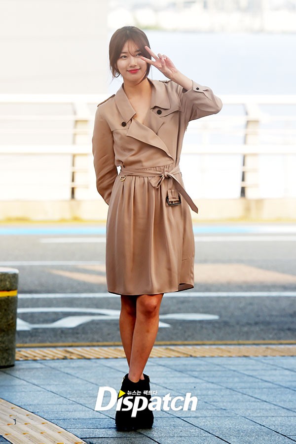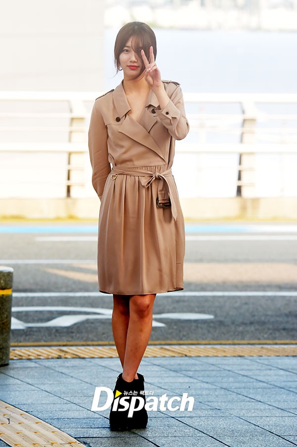 이날 수지는 더위에도 불구하고 트렌치 코트로 멋을 냈다. 특히 수지 특유의 귀여운 표정과 포즈로 취재진들을 맞이했다.