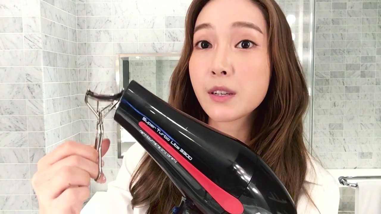 눈썹을 드라마틱하게 올리는 꿀팁! 헤어드라이기로 뷰러에 열을 가해주세요. 그리고 손바닥에서 잠시 열을 식힌 뒤, 눈썹을 집으면 효과가 2배!
