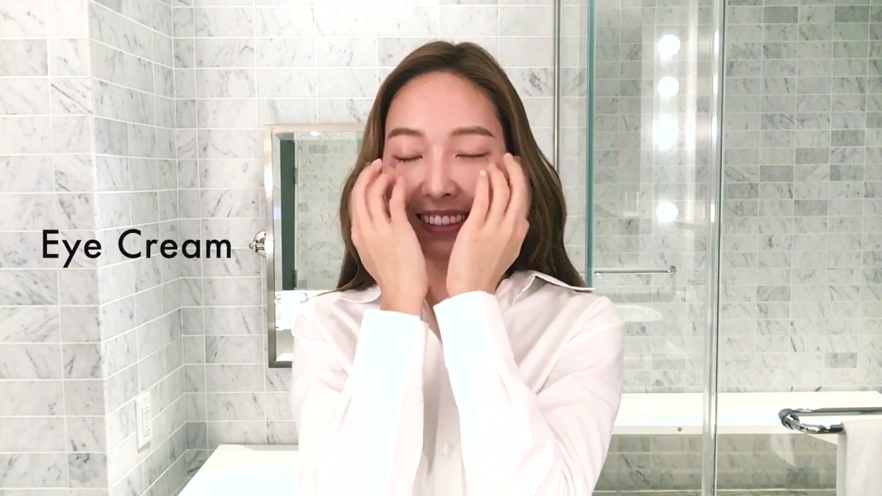 아이크림도 빠질 수 없죠. 눈 밑에 살짝 바르고, 손가락으로 가볍게 두드려줍니다. 마치 피아노를 치는 느낌으로 발라주세요.