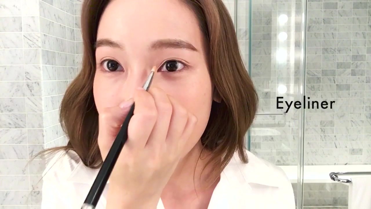 그 다음은 아이라이너입니다. 눈을 떴을 때 보일 정도로 그려주세요. 자신의 눈매에 잘 어울리는 라인을 찾는게 포인트입니다.