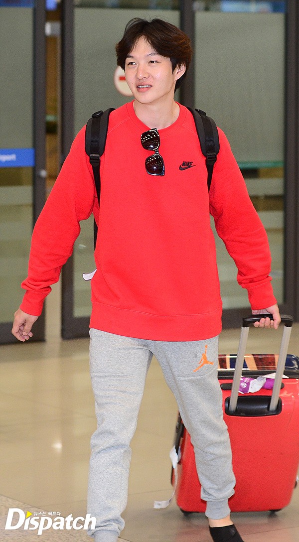 창섭은 직접 캐리어를 끌고 입국장을 나섰다. 패션은 심플했다. 간편한 맨투맨 티셔츠와 트레이닝 복 하의를 매치했다.