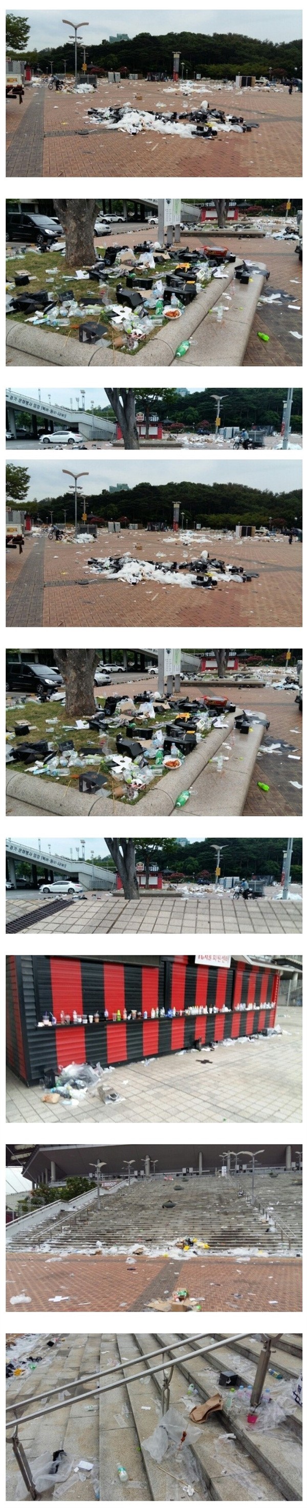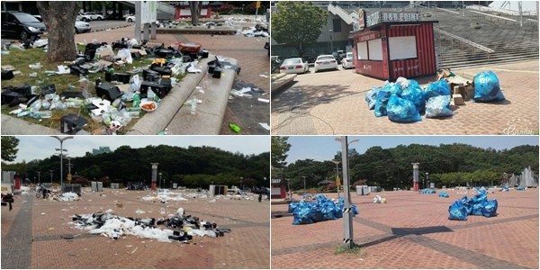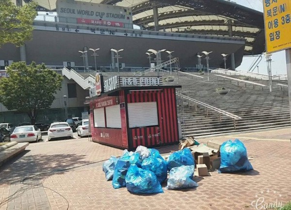 실제로 경기장 모습은 지난 20일과는 확연히 다릅니다. 어지럽게 버려진 쓰레기들은 모두 봉투에 담겼고요. 깔끔하게 정리가 된 모습입니다.
