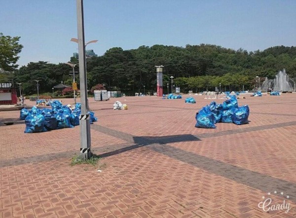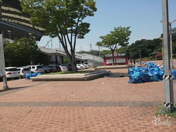 '빅뱅'의 팬들은 21일 '디스패치'에 상암동 월드컵 경기장에서 찍은 사진을 제보했습니다. "오전 8시부터 한국 팬들이 모여 계속해서 쓰레기를 치웠다"고 전했습니다.