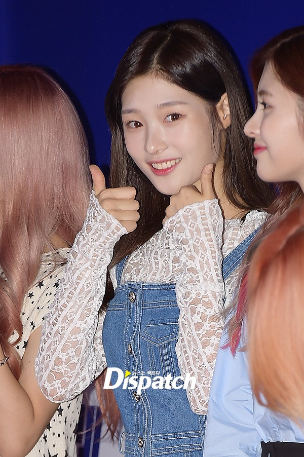 정채연은 이날 귀여운 포즈를 마음 껏 자랑했다. 카메라를 향해 주먹을 쥐고 엄지 손가락을 치켜올리는 등 깜찍한 모습으로 눈길을 끌었다.
