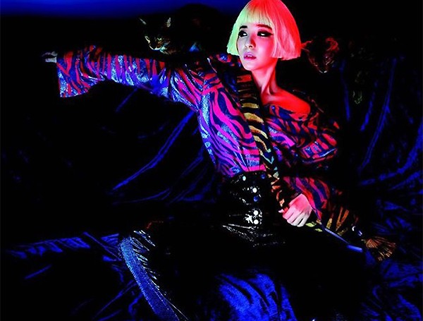 동안 비주얼은 여전했다. 화려한 색상의 드레스를 입고 몽환적인 분위기를 연출했다. 금발의 똑단발 헤어와 짙은 메이크업도 인상적이었다.