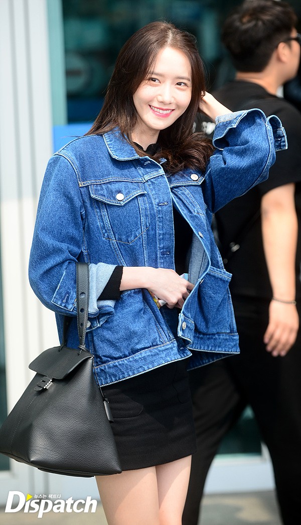 윤아는 데님 소재의 재킷과 미니 스커트로 세련된 공항패션을 완성했다.