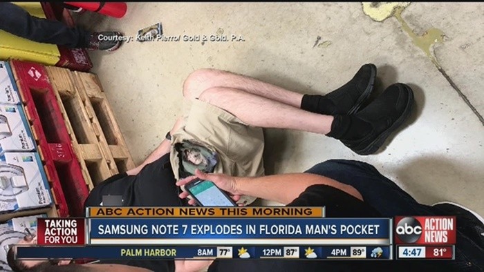 18일(현지시각) ABC뉴스는 미국 플로리다주에 사는 조나단 스트로벨이란 남성이 갤럭시 노트7이 주머니에서 폭발해 심각한 화상을 입었다며 16일 삼성전자를 상대로 소송을 제기했다고 밝혔다.
