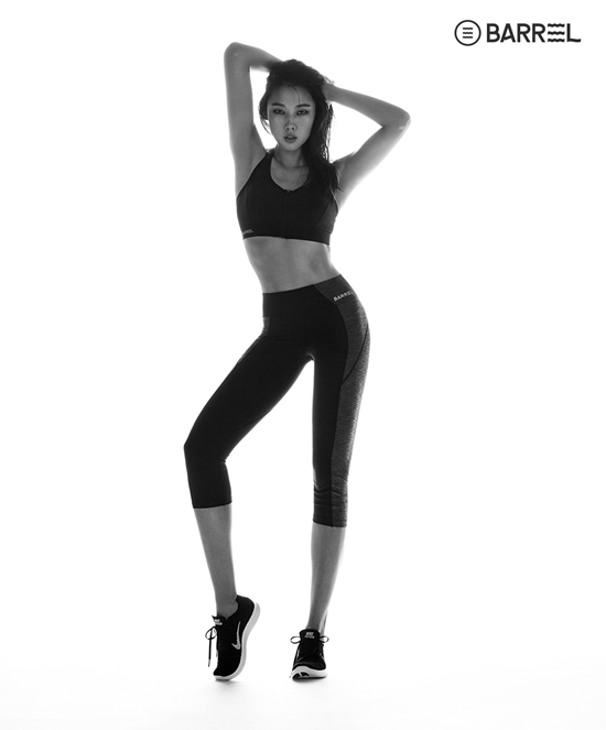 '배럴' 측은 10일 새 피트니스 웨어 라인 '마카롱'(MACALONG)의 화보를 공개했다. 한혜진이 직접 디자인 및 생산에 참여한 제품들이다.
