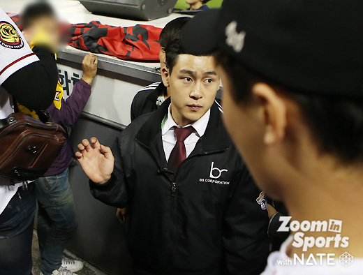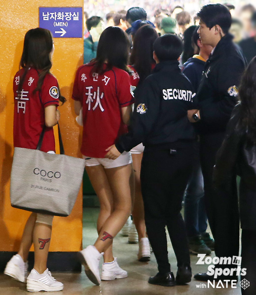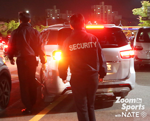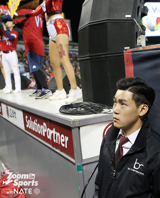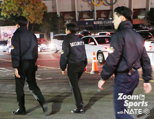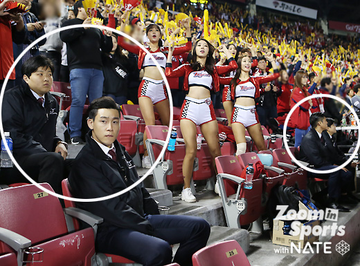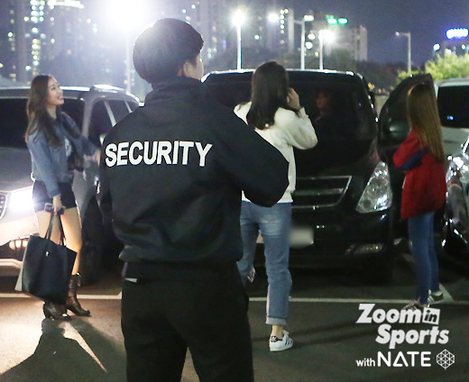 두 명의 경호요원들은, 지난 1일 잠실 LG-SK전 때 발생한 '치어리더 성추행 사건' 바로 그 같은 위치에서 갑작스런 불상사를 사전에 방지하고 있었다. 당시 사건 현장에서 경찰에 체포된 성추행범은 현재 검찰에 넘겨진 상태다.