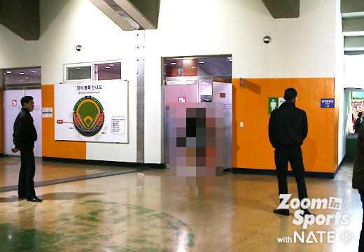 여성 전용 화장실 앞을 지나는 남자 관중들의 일거수일투족을 예의주시하고 있었다.