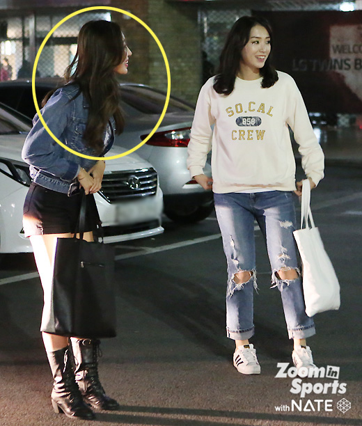 지난 4일 두산-롯데전 때 귀가길에 오른 롯데 치어리더 박기량(오른쪽)과 염지원 역시 잠실 경호요원들의 보호를 받았다. 하지만 그건, 야구장 안까지가 전부였었다. 기억하는가?