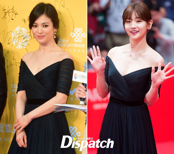 배우 송혜교와 박소담이 같은 옷, 다른 느낌을 연출했습니다.