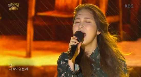 권진아의 무대도 마찬가지였습니다. 비바람을 뚫고 열창했는데요. 권진아는 머리가 다 젖은 채 무대를 마쳤습니다.